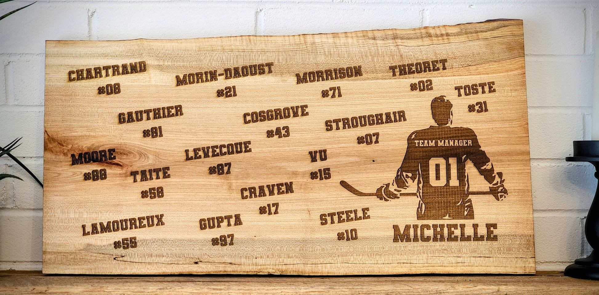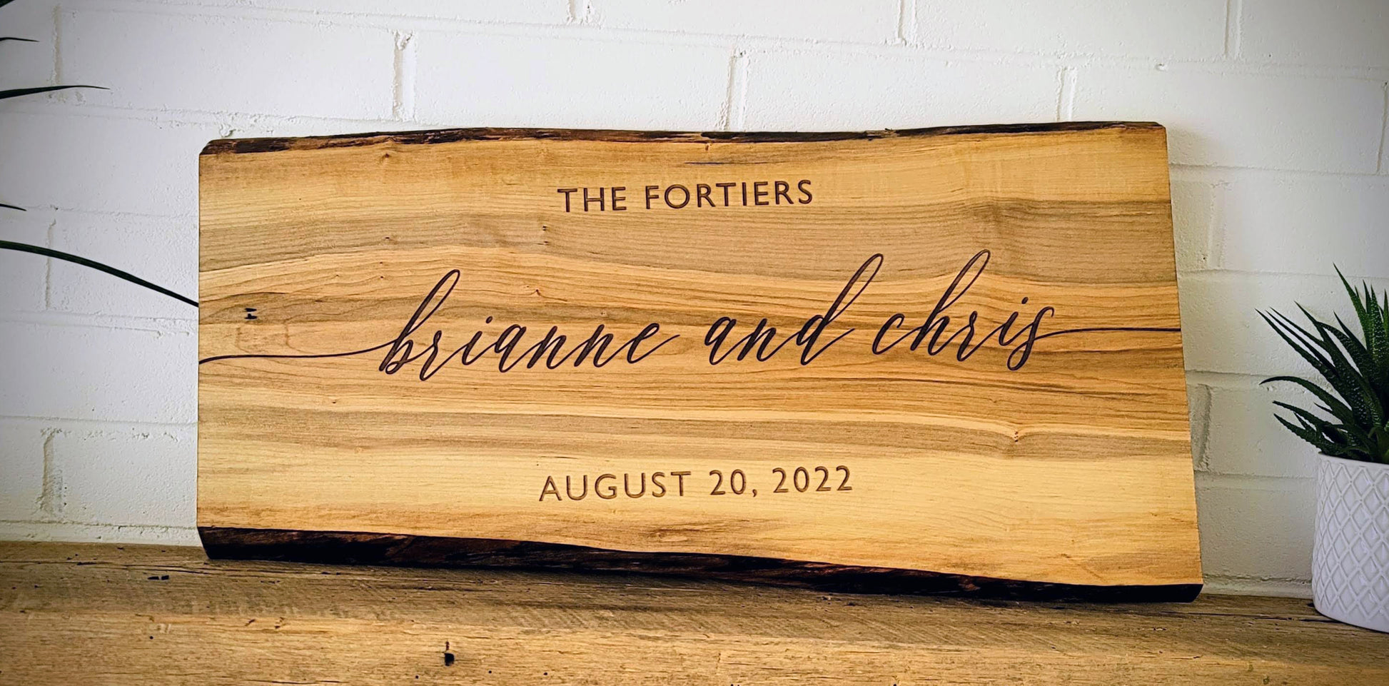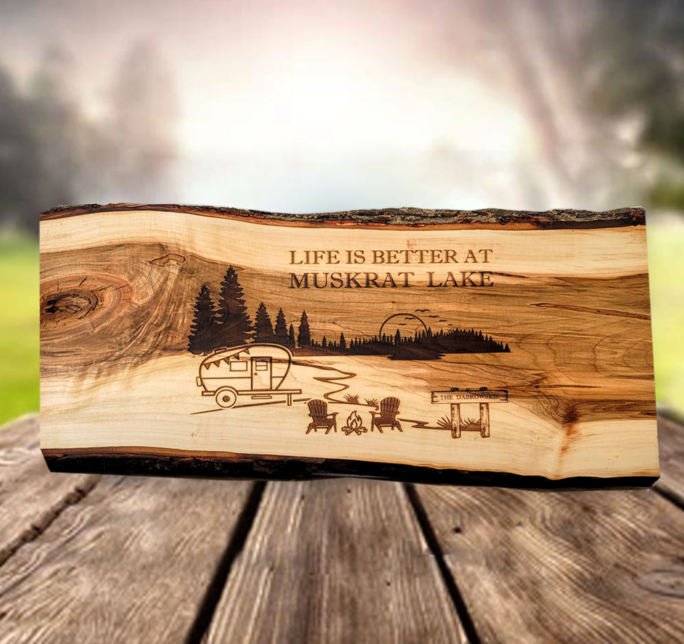 Order your own beautiful live edge maple charcuterie board with a custom saying and/or design. These are a great gift for any occasion.
